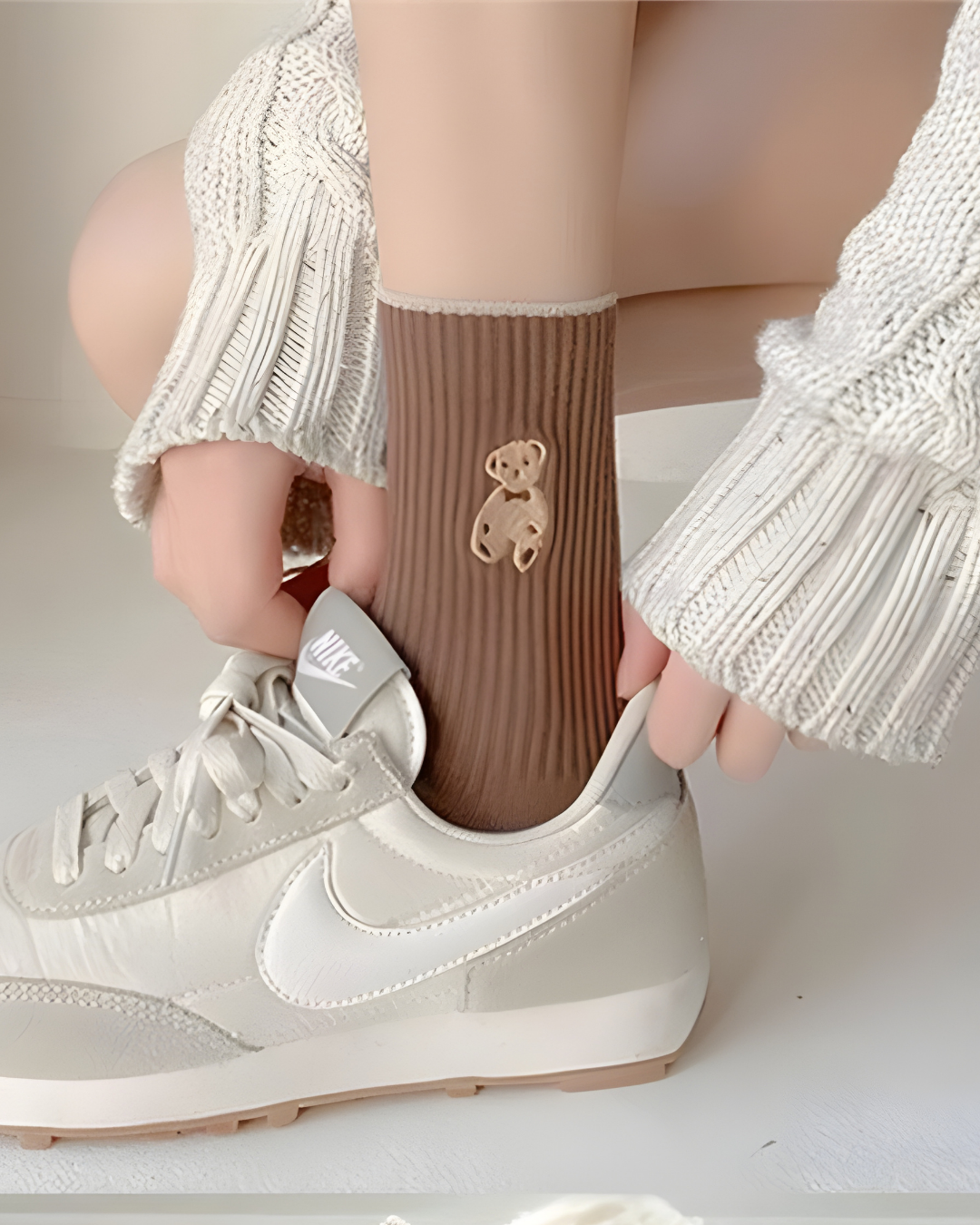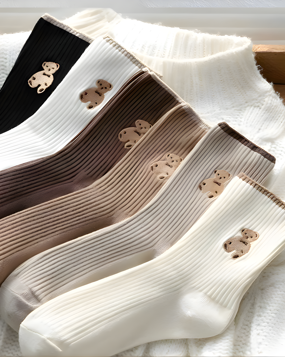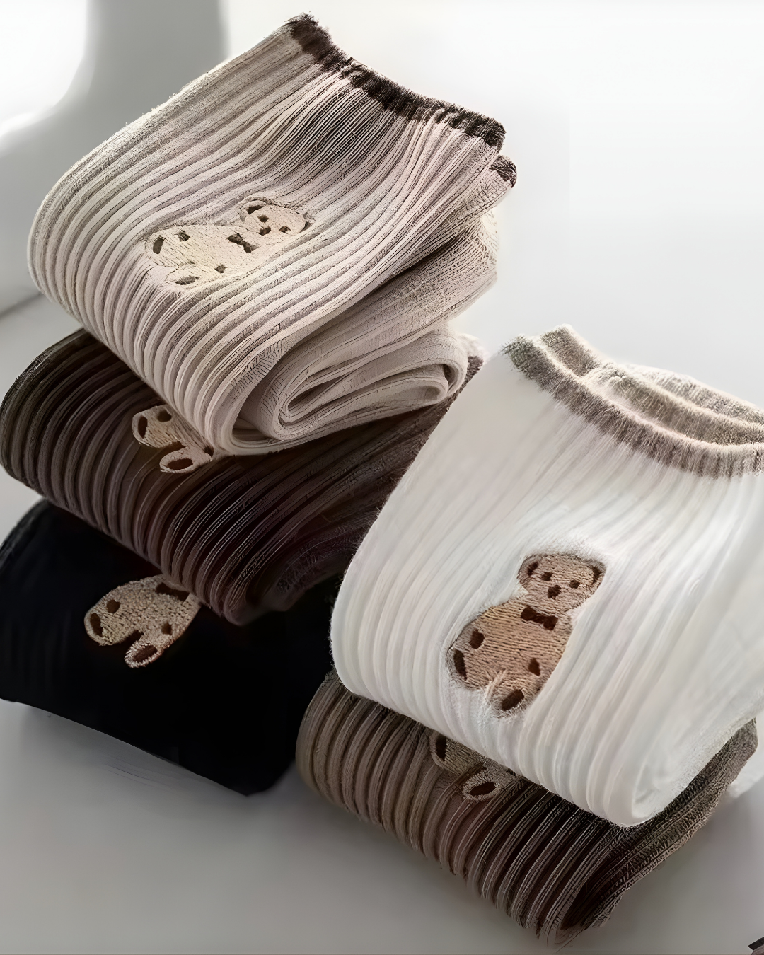 Sevimli ayıcık desen detayına sahip, ribana dokulu rahat yapısıyla günlük kullanım için ideal kadın çorabı. Yumuşak kumaşı sayesinde gün boyu konfor sunar ve farklı renk seçenekleriyle her stile uyum sağlar.